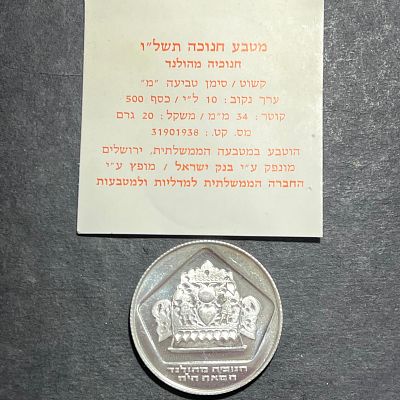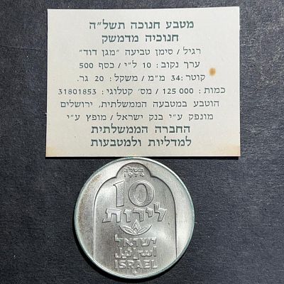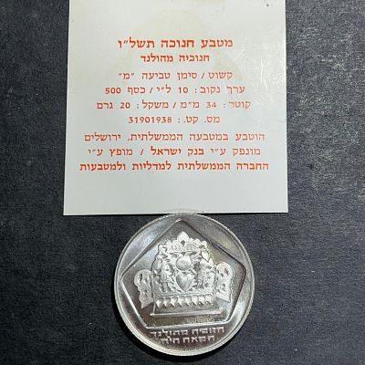 מטבע כסף חנוכה חנוכיה מדמשק 10 לירות 1974 משקל 20 גרם , קוטר ...
