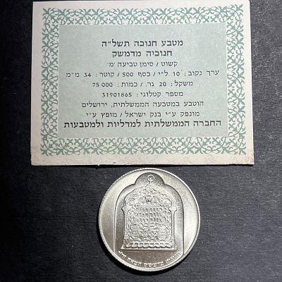 כסף! מטבע חנוכייה מדמשק כסף 500 רגיל משקל 20 גרם במארז המקורי
