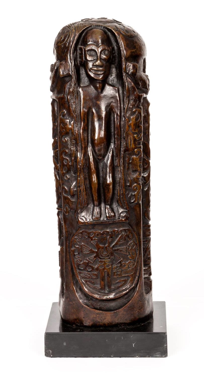 Notes: The original cast from 1894 was lost. It resembles a totem with Polynesian-like figures and symbols.