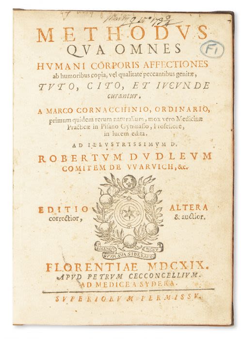 Marco Cornacchini. Methodus qua Omnes Humani Corpari Affectiones ab Humoribus Copia, Vel Qualitate Peccantibus Genitae, Tuto, Cito et Iveunde Curantur.